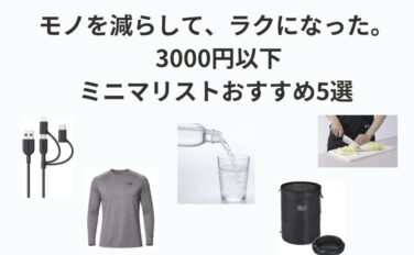 アイテム安いけど買ってよかったおすすめアイテム5選【3000円以下/ミニマリスト】 3000円以下で買ってよかったアイテムをミニマリスト目線で厳選して紹介。折りたたみゴミ箱、3in1ケーブル、速乾Tシャツ、強炭酸水、三徳包丁など、暮らしがラクになる5つを実体験ベースで解説します。 2026.03.01アイテム