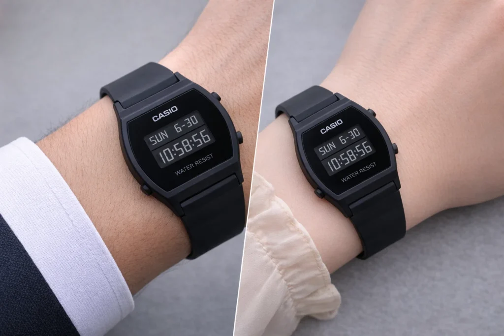この「LW-204-1BJF」は、サイズ感としてはややコンパクトで、いわゆるレディース(小さめサイズ)に近いモデルです。