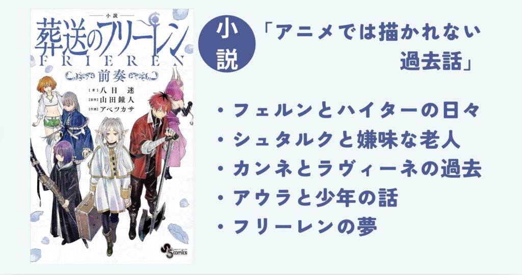 「小説 葬送のフリーレン~前奏~」アニメでは描かれなかった各キャラクターの過去話が知れて、本当に読んで良かったです。笑いあり、最後は涙ぐみました。