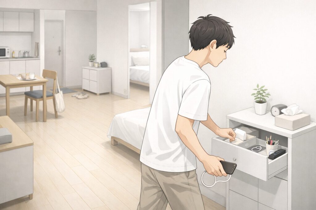 たとえば、ティッシュや充電器、文房具などを一か所にまとめすぎると、使うたびに移動が必要になります。部屋はすっきりして見えても、実際の使いやすさまで良くなるとは限りません。