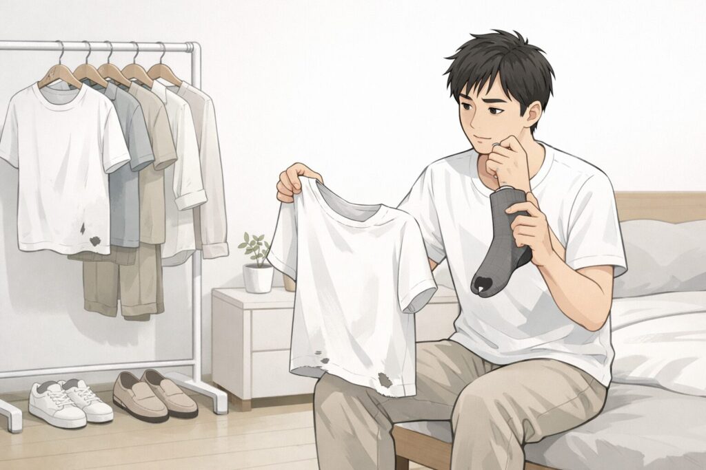 服が少ないと管理はしやすいですし、毎朝迷いにくいメリットもあります。ただ、その反面で長持ちしにくいというデメリットは感じやすいです。